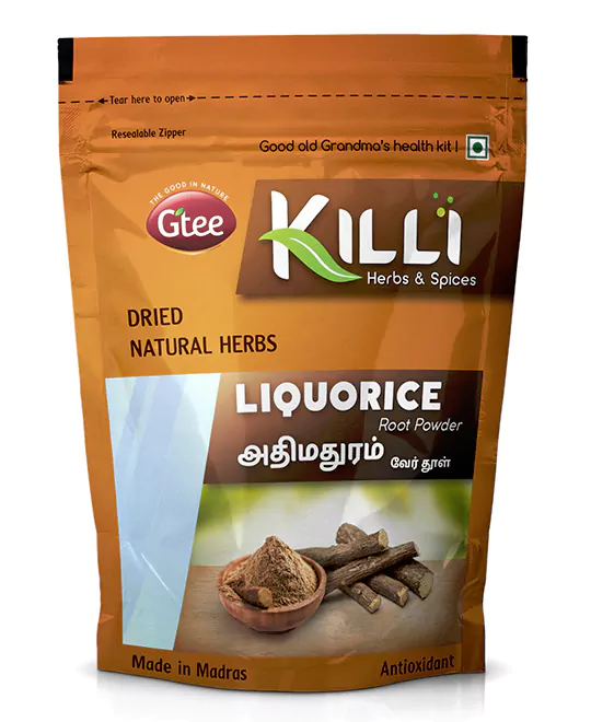 Mix 2-3 gm of Killi Liquorice root powdder with 150ml of water, boil for 3 – 5 minutes, filter and drink hot. Can be added as a sweetener to tea, milk and food preparations.