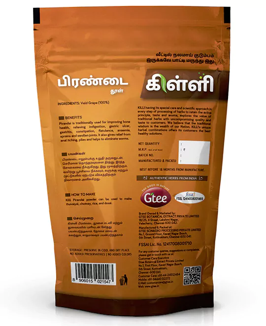 Killi Pirandai powder can be used to make thuvaiyal, chutney, rice, and dosai.